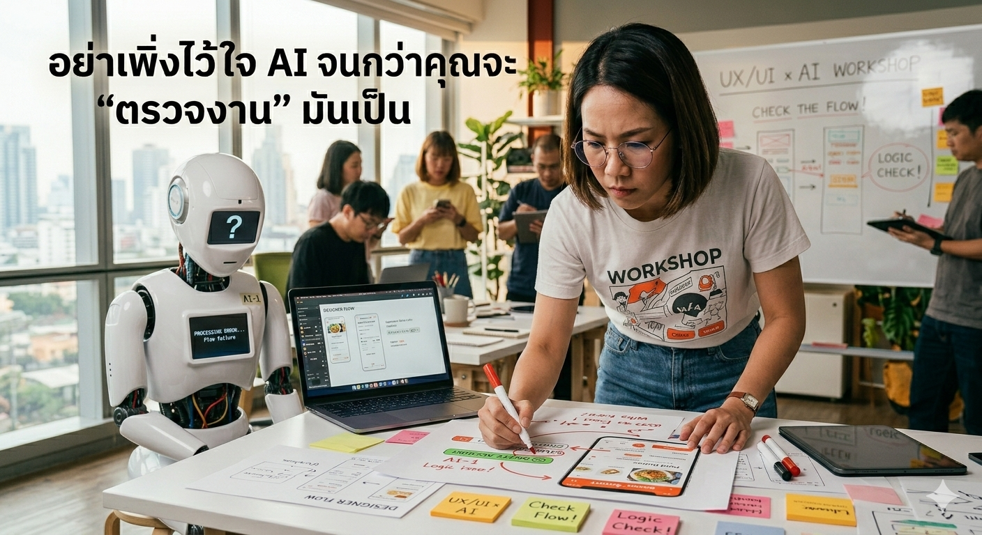 จาก Workshop UX/UI ที่ผ่านมา สิ่งหนึ่งที่เห็นชัดเลยคือ AI ยังทำออกมาไม่ได้ตรงใจ 100% ในทันที เรายังต้องคอย "ตะล่อม" คอยปรับจูนไปกับมันเรื่อยๆ